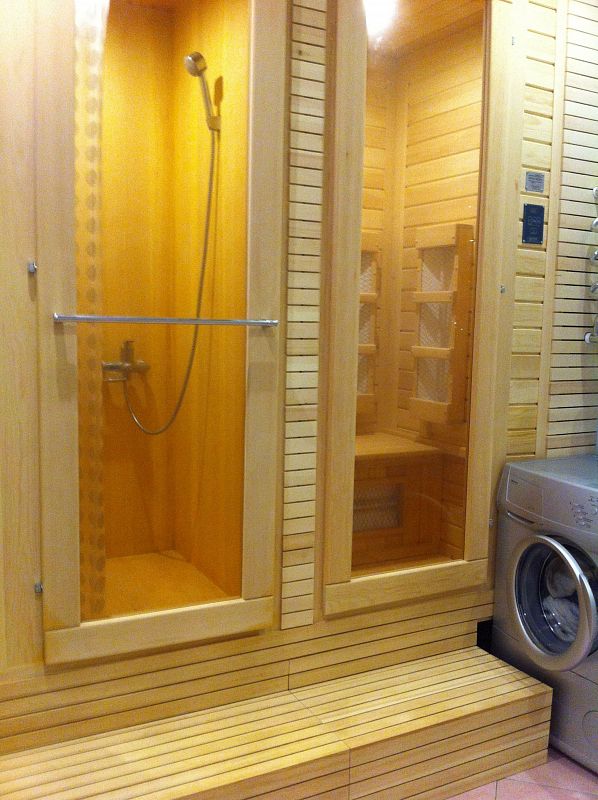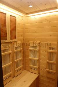Это специально оборудованная кедровая кабина для прогрева тела человека сухим теплом. Воздух в таких парных не нагревается. Инфракрасные лучи воздействуют на тело, равномерно прогревая мышцы, суставы и органы. Керамические излучатели похожи на лампы, имеют высокую температуру нагрева, поэтому защищены противоожоговыми решетками. Тело человека в таких саунах нагревается интенсивнее. Работает кабина за счет электричества. Двухместная инфракрасная сауна с керамическими излучателями подойдет как для домашнего использования, так и для коммерции.