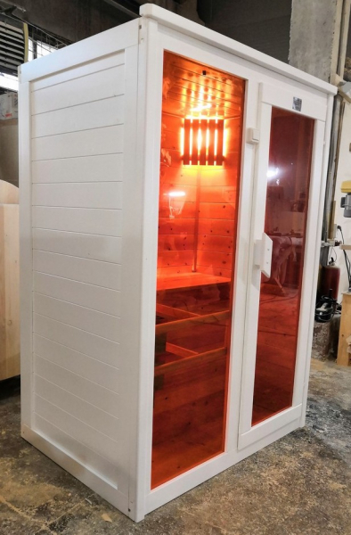 Это специально оборудованная кабина из липы для прогрева тела человека сухим теплом. Воздух в таких парных не нагревается. Инфракрасные лучи воздействуют на тело, равномерно прогревая мышцы, суставы и органы. Карбоновые излучатели, встроенные в стены кабины, обладают мягким прогревом, что полностью исключает возможность ожога. Работает кабина за счет электричества. Двухместная инфракрасная сауна с карбоновыми излучателями подойдет как для домашнего использования, так и для коммерции.